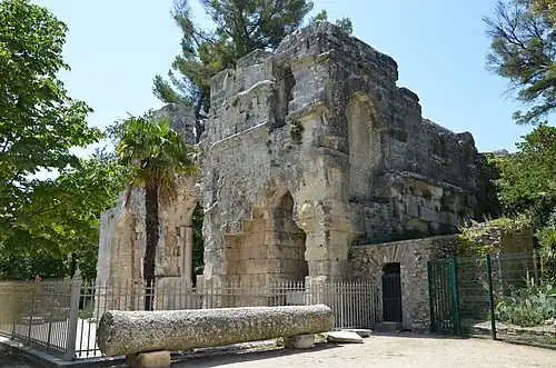 The so-called Temple of Diana is a 1st-century ancient Roman building in Nîmes, Gard, built under Augustus. It is located near the gushing spring of "La Fontaine", around which was an Augusteum, a sanctuary devoted to the cult of the emperor and his family, centred on a nymphaeum. Its basilica-like floor plan argues against it being a temple and there is no archaeological or literary evidence for its dedication to Diana.[1]