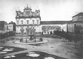 View of the Terreiro de Jesus, with the Cathedral in the background, photographed in 1862. The old Colégio dos Jesuítas de Salvador (Salvador Jesuit School) is next to the church.