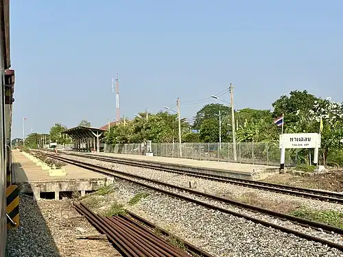 Tha Chalaep railway station is a railway station located in Sisa Thong Subdistrict, Nakhon Chai Si District, Nakhon Pathom. It is a class 3 railway station located 40.025 km (24.9 mi) from Thon Buri railway station.