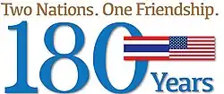 In 1832, President Andrew Jackson sent his envoy Edmund Roberts on the USS Peacock to the court of Siam.[4] Roberts signed a Treaty of Amity and Commerce on March 20, 1833, with Chao Phraya Phraklang Prayurawongse representing King Nangklao (Rama III).[5] Naval surgeon William Ruschenberger accompanied the return mission for exchange of ratifications. His account and that of Mr. Roberts were collected, edited, and re-published as Two Yankee Diplomats in 1830s Siam.[6] Thailand is thus the first Asian nation to have made a formal diplomatic agreement with the United States, eleven years before the Great Qing and twenty-one years before Tokugawa Japan. This was affirmed in 2008 by Prime Minister Samak Sundaravej, who met President George W. Bush "on the auspicious occasion of the celebration of 175th anniversary" of Thai–American relations.[7]