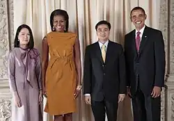 Prime Minister Abhisit Vejjajiva, Pimpen Vejjajiva, U.S. President Barack Obama and Michelle Obama on 23 September 2009, in New York