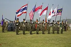 Multinational service members stand in formation during the opening ceremony for Exercise Cobra Gold at the Royal Thai Marine Corps Headquarters in Sattahip, Thailand