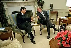 U.S. President George W. Bush meets with Prime Minister Thaksin Shinawatra of Thailand in the Oval Office Dec. 14, 2001. The two leaders discussed economic issues and the war on terrorism