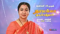 Thayamma Kudumbathaar is a 2024 Indian Tamil-language family drama serial directed by E.Vikkiramathithan and produced by Radaan Mediaworks. The show stars Radhika Sarathkumar, Venu Arvind and Mahalakshmi in lead roles. It premiered on DD Tamizh TV on 19 January 2024, along with two other serials Budget Kudumbam and Shakthi IPS.[1]