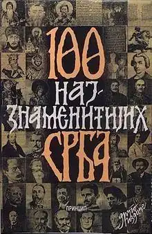 The 100 most prominent Serbs (Serbian: 100 најзнаменитијих Срба, romanized100 najznamenitijih Srba) is a book containing the biographies of the hundred most important Serbs[2] as compiled by a committee of academicians at the Serbian Academy of Sciences and Arts. The committee members were Sava Vuković, Pavle Ivić, Dragoslav Srejović, Dejan Medaković, Dragomir Vitorović, Zvonimir Kostić, Vasilije Krestić, Miroslav Pantić and Danica Petrović. The book was published for the first time in 1993 on 20+617 pages, reprinted in 2001 and the third extended edition was printed in 2009 and 2013.[3][2]
