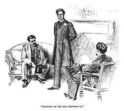 ![]() Holmes, Watson, Annie Harrison and Percy Phelps, 1893 illustration by Sidney Paget in The Strand Magazine | |||