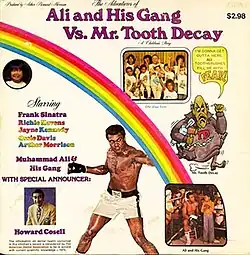 The Adventures of Ali and His Gang vs. Mr. Tooth Decay is a 1976 educational album by the American heavyweight boxer Muhammad Ali. The album was recorded to raise awareness of tooth decay among children. The album features several notable personalities including Howard Cosell, Frank Sinatra, and Ossie Davis. The album was recorded in the year of the United States Bicentennial, and makes several patriotic references to America's past including the Liberty Bell and Paul Revere.[2]