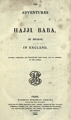 The Adventures of Hajji Baba of Ispahan in England is an 1828 novel by the British traveller and writer James Justinian Morier. It is a sequel to his 1824 novel The Adventures of Hajji Baba of Ispahan. It followed despite protests from the Persian ambassador to London about the original.[1] Morier presented it as a satire on Western civilisation.[2]