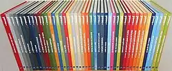 The following table gives an overview of the first pre-publication and first album release dates for the various adventures, but does not take into account any interruptions.[a 28]