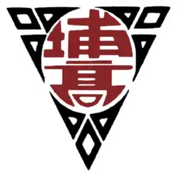 The school badge of Puli High School was designed by school teacher Wei Bian (Chinese: 卞瑋) in 1975. The Chinese abbreviation of Puli High School "埔高" is placed in the center. The triangle shape represents the three meanings of the school motto "sincerity" - wisdom, kindness and courage. The inner circle means self-improvement.[50]