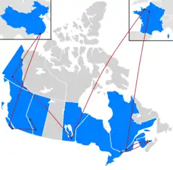 The Amazing Race Canada 2 is the second season of The Amazing Race Canada, a Canadian reality competition show based on the American series The Amazing Race. Hosted by Jon Montgomery, it featured eleven teams of two, each with a pre-existing relationship, in a race across Canada and the world. The grand prize included a CA$250,000 cash payout, two Chevrolet Silverado "High Country Edition" trucks, free gasoline for life from Petro-Canada, and the ability to fly for free anywhere for a year with Air Canada. This season visited seven provinces, one territory, and two additional countries and travelled over 40,000 kilometres (25,000 mi) during twelve legs. Starting in Jasper National Park, racers travelled through Alberta, British Columbia, Hong Kong, Macau, the Yukon, Manitoba, France, Quebec, Prince Edward Island, New Brunswick, and Ontario before finishing in Ottawa. A new twist introduced in this season was international travel. The season premiered on CTV on July 8, 2014, with the season finale airing on September 21, 2014.[1]