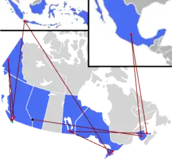 The Amazing Race Canada 6 (also known as The Amazing Race Canada: Heroes Edition)[1] is the sixth season of The Amazing Race Canada, a Canadian reality competition show based on the American series The Amazing Race. Hosted by Jon Montgomery, it featured ten teams of two, consisting of everyday Canadian heroes, in a race across Canada and the world.[2] The grand prize included a CA$250,000 cash payout, a trip for two around the world, and two 2018 Chevrolet Traverse Redlines.[2] This season visited six provinces, one territory, and two additional countries and travelled over 50,000 kilometres (31,000 mi) during eleven legs. Starting in Colwood, British Columbia, racers travelled through British Columbia, the Yukon, Indonesia, Ontario, Manitoba, Prince Edward Island, Mexico, New Brunswick, and Alberta before finishing in Banff, Alberta. New twists introduced in this season include the Blind Double U-Turn and U-Turns placed at Detour decision points. The season premiered on CTV on July 3, 2018,[3] with the season finale airing on September 11, 2018.