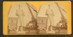 Statue at Westerly, Rhode Island, circa 1876. Note the smaller version, far left.