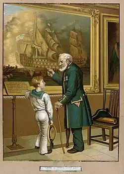 The realism of the scene is visible in the flags of the masts, which deliver part of the famous message England expects that every man will do his duty...