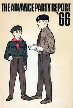 The Boy Scouts Association's The Chief Scout's Advance Party Report 1966[1] attempted to address the association's falling enrollment numbers and modernise its programs.[2] It resulted in changes to traditional iconic uniforms, changes to awards, training schemes, the association's name and other nomenclature, reduced distinctions between Cubs and Scouts and discontinuation of Rovers. However, the changes failed to halt decline in older enrolments, resulting in a shift to younger ages and also resulted in disaffection, a schism in the organisation, growth of the alternate British Boy Scouts and European Scout Federation (British Association), formation of independent Scout groups and further alternate Scout organisations, particularly the Traditional Scouting Baden-Powell Scouts' Association and helped to re-establish understanding of Scouts as a movement rather than a single organisation.[2]