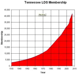 Official church membership as a percentage of general population was 0.75% in 2014. According to the 2014 Pew Forum on Religion & Public Life survey, roughly 1% of Tennesseans self-identified most closely with the LDS Church.[3] The LDS Church is the 10th largest denomination in Tennessee.[4]