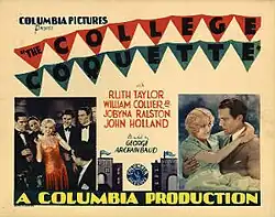 The College Coquette is a 1929 American pre-Code drama film directed by George Archainbaud and written by Norman Houston. The film stars Ruth Taylor, William Collier Jr., Jobyna Ralston, John Holland, Adda Gleason and Gretchen Hartman. The film was released on August 5, 1929, by Columbia Pictures.[1][2][3]