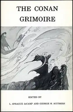 The Conan Grimoire is a 1972 collection of essays, poetry and fiction edited by L. Sprague de Camp and George H. Scithers, published in hardcover by Mirage Press. The essays were originally published as articles in Scithers' fanzine Amra. The book is a companion to Mirage’s previous two volumes of material from Amra, The Conan Reader (1968) and The Conan Swordbook (1969). Most of the material in the three volumes, together with some additional material, was later reprinted in two de Camp-edited paperback anthologies from Ace Books; The Blade of Conan (1979) and The Spell of Conan (1980).