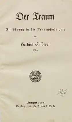 The Dream – Introduction into the Psychology of Dreams (German: Der Traum – Einführung in die Traumpsychologie) is a book by the Austrian psychoanalyst Herbert Silberer, written 1918 in Vienna and published 1919 by Ferdinand Enke in Stuttgart. His main intention was to provide a short, comprehensible guide on how to read and understand more sophisticated literature on dreams, as well as giving an appreciation of fundamental dream phenomena, because he considered both of them as lacking at this time. Silberer himself called this book the preamble for more sophisticated and complicated works, which could then build up on his own work.[1]