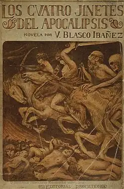The Four Horsemen of The Apocalypse (Spanish: Los cuatro jinetes del Apocalipsis) is a novel by the Spanish author Vicente Blasco Ibáñez. First published in 1916, it tells a tangled tale of the French and German sons-in-law of an Argentinian landowner who find themselves fighting on opposite sides during the First World War. Its 1918 English translation by Charlotte Brewster Jordan became the best-selling novel in the US in 1919 according to Publishers Weekly, which hailed it as "a superbly human story told by a genius." The novel was included in the list of 100 best novels of the 20th century by the Spanish newspaper El Mundo.[1]