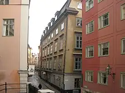 Glaucus 8 is an estate consisting of three different houses that constitute the blocks facade towards Österlånggatan.