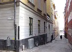 Glaucus 8 in the intersection Österlånggatan/Johannesgränd. To the left lies Baggensgatan 27.
