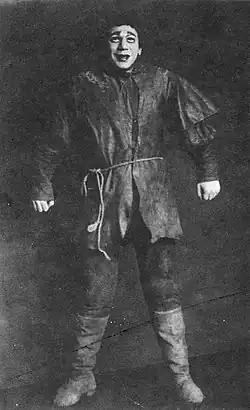 It was first produced in Yiddish in New York in 1931[2] by the Yiddish Ensemble Art Theatre. It was directed by Egon Bleicher, with music by Joseph Achron, and starred Alexander Granach as the golem and Lazar Freed as Rabbi Leyb. Leivick helped to prepare this stage version.[3] Some of a reworked version of the musical score can be heard here.[1] Another setting by Vladimir Heifetz was performed at Carnegie Hall by the Jewish Culture Society Chorus.[7]