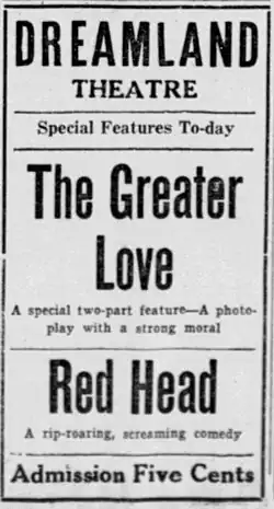 The Greater Love is a 1913 American silent short drama film, directed by Allan Dwan, and starring Charlotte Burton and Mabel Brown and Edward Coxen.[1]