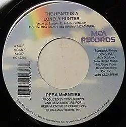 "The Heart Is a Lonely Hunter" is a song written by Mark D. Sanders, Kim Williams and Ed Hill, and recorded by American country music artist Reba McEntire. It was released in February 1995 by MCA Nashville as the fourth single from her nineteenth studio album, Read My Mind (1994). The song reached number one on both the US and Canadian country singles charts that year.