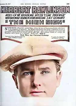 The High Sign is a 1917 American silent drama film directed by Elmer Clifton and starring Herbert Rawlinson, Agnes Vernon and Hayward Mack.[1]