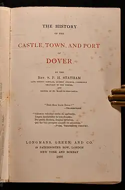 The History of the Castle, Town, and Port of Dover is a nearly complete work of the history of Dover, Kent, England from 54 BCE to 1899 by Queen's College scholar Samuel Statham.