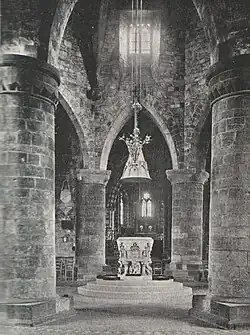A North aisle was added circa 1180 and second North aisle was added circa 1275. During the early 15th century, a South aisle was built, the triforium of the round nave was replaced by a clerestory, and a Western tower was added.