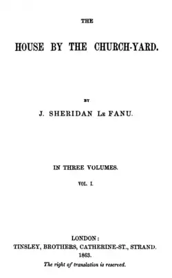 The House by the Churchyard is an 1863 novel by the Irish writer Sheridan Le Fanu that combines elements of the mystery novel and the historical novel. Le Fanu uses the Gothic fiction plot to explore various themes related to death, suspense, mystery, the supernatural, and the darker aspects of human actions against the backdrop of 18th-century Irish village life. The work is one of Le Fanu's most popular novels, and was first published in London by William Tinsley.