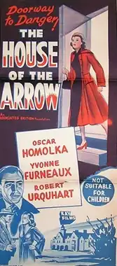 The House of the Arrow is a 1953 British mystery film directed by Michael Anderson and starring Oskar Homolka, Robert Urquhart and Yvonne Furneaux.[1] It was written by Edward Dryhurst and is the fourth film version of the 1924 novel The House of the Arrow by A. E. W. Mason, featuring his French detective Inspector Hanaud.[2]
