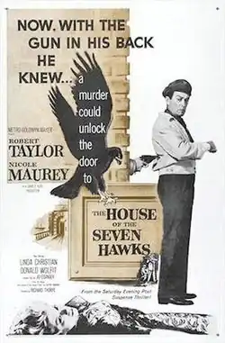 The House of the Seven Hawks is a 1959 British mystery film directed by Richard Thorpe and starring Robert Taylor, Nicole Maurey and Linda Christian.[2][3] It was written by Jo Eisinger based on the 1952 Victor Canning novel The House of the Seven Flies.[4] It was the final film by Robert Taylor under his twenty five-year contract with MGM.[5] The film follows an American captain searching for sunken treasure who becomes entangled with criminals and is arrested by the Dutch police.