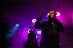 This began a flurry of activity that included performances at some of New York City's best venues, the production of a cable TV series,[8] the creation of innovative websites, art exhibitions, fashion shows, poetry readings, multi-artist music concerts, political salon debates, and music recordings. Reaction to The Imperial Orgy was mixed and seemingly confused. Major record labels courted the group but were rejected because they wished to turn the group into a traditional rock band for marketing purposes. The group landed on the cover of international publications such as .Net Magazine, Gig Magazine, and Mac Today Magazine. Their television series was syndicated in many cities across the U.S. and in France, Netherlands, and Australia. This period of activity climaxed with the production of a giant counter-culture masquerade ball at Webster Hall, a four-story theatre/night club in New York's East Village.[9][10]