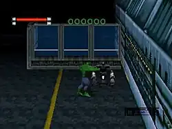 Attention to Detail cited Doom as an influence in the game's presentation. The robotic nature of the Hulk's enemies was influenced by a proviso from Marvel forbidding the Hulk from killing anyone.[13] The game was unveiled at E3 1996, with a release set for the first quarter of 1997.[14] It was released for the PlayStation and Sega Saturn on April 10, 1997.[10][15] A PC version was advertised, but not released.[16]