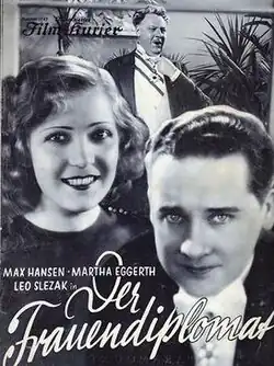 The Ladies Diplomat (German: Der Frauendiplomat) is a 1932 German comedy film directed by E. W. Emo and starring Mártha Eggerth, Max Hansen, and Leo Slezak.[1] It was remade in Britain in 1934 as The Diplomatic Lover.