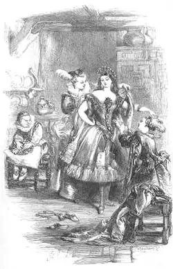 As was common practice at the time, the novel was published in a three-volume set known as a triple decker. The first edition was produced by Henry Colburn in 1849, with the subtitle "A Romance of Pendle Forest". At £1 11s 6d, about the amount that a skilled worker could earn in a week, it was expensive. Routledge published an illustrated edition in 1854, reissued in 1878.[5] The twelve full-page illustrations were by John Gilbert.[6]