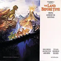 James Horner, who composed music for Bluth's An American Tail (1986), reunited with the director for The Land Before Time.[1] The score was performed by the London Symphony Orchestra and the Choir of King's College. Horner said that a minor portion of the film works without music and had to be tightly timed to understand what the characters are doing, and had to include an array of emotions and cinematic things, despite being an animated film, so that it could work with a wider audience.[2] He added, "There were some really nice scenes in that. I don’t respond to animation quite like I do live action. It doesn’t hit me the same way. There’s a suspension of reality. Writing for something real and writing for something that’s not real and pretending is a little different."[2] Besides composing the score, Horner co-wrote the theme song "If We Hold on Together", with Will Jennings, performed by Diana Ross and produced by Peter Asher.[1][3]