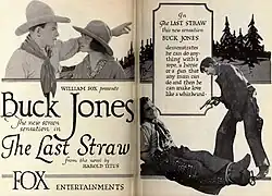 The Last Straw is a lost 1920 American silent Western film directed by Denison Clift and Charles Swickard and starring Buck Jones, Vivian Rich, and Jane Talent. It cost $31,000 to make, considerably exceeding its planned budget.[1] It was Jones' first starring role.