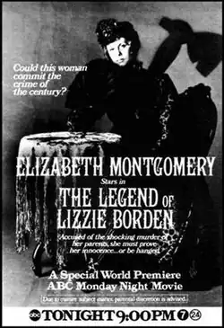The Legend of Lizzie Borden is a 1975 American historical mystery television film directed by Paul Wendkos and starring Elizabeth Montgomery—in an Emmy-nominated performance—as Lizzie Borden, an American woman who was accused of murdering her father and stepmother in 1892. It co-stars Katherine Helmond, Fritz Weaver, Fionnula Flanagan, and Hayden Rorke. It premiered on ABC on February 10, 1975. The film was nominated for a Golden Globe award for Best Motion Picture Made for Television in 1976.