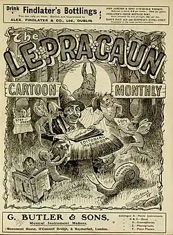 The Lepracaun Cartoon Monthly was a magazine of satirical and humorous material founded by Irish cartoonist Thomas Fitzpatrick in 1905.[1] It included some of Fitzpatrick's finest and most entertaining work, mainly about Irish politics.[2] Some contributors of note were James Joyce, John Fergus O'Hea and Mary Fitzpatrick O'Brien, Fitzpatrick's daughter who took over the magazine after his death in 1912. There are varying reports of when the Lepracaun Cartoon Monthly ceased publication, one source reporting 1919 and another reporting less than ten years after publication began in 1905.[1]