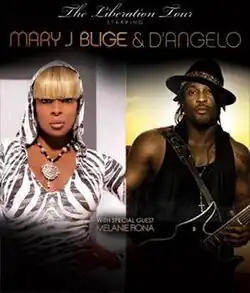 The Liberation Tour is a co-headlining concert tour by American recording artists, Mary J. Blige and D'Angelo. The North America tour supports Blige's tenth studio album, My Life II... The Journey Continues (Act 1) (2011) and D'Angelo's third studio album, Black Messiah (2014). The tour also features special guest Melanie Fiona.[1]