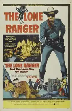 The Lone Ranger and the Lost City of Gold is a 1958 American Western film in Eastmancolor released by United Artists. The second of two theatrical features specifically based on and continuing the TV show The Lone Ranger it stars Clayton Moore and Jay Silverheels, reprising their roles from the TV series.[1][2] The first feature film was 1956's The Lone Ranger. No further films based on this specific version of the characters were made after this one.[3]
