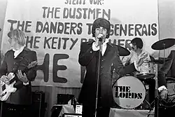 In 1959, The Lords started out as a skiffle band in Berlin using partly homemade instruments. In 1964 when Beatlemania and the British Invasion swept across the world, they turned into "Germany's First Beat Music Act" and developed their classic style for which they are still known in Germany today. On 23 July 1964, the Beatles film A Hard Day's Night appeared in the German cinemas, titled Yeah Yeah Yeah. Before the premiere, a competition was held, with the "Berliner Beatles" being sought. From this competition the Lords emerged as the winner on 21 July 1964. Therefore, they were eligible to participate in the nationwide finals at the Hamburg Star Club. On 6 September 1964, the Lords won here too, and were named "Germany's Beat Band No. 1".[3] In late 1964 the band received a recording contract from EMI in Cologne and were now marketed as the German Beatles.[4] In 1964, their bassist Knud Kuntze ("Lord Knud") (18 March 1944 – 14 June 2020) had to leave the band due to an accident in which he lost his leg. He then started a career in radio, becoming a prominent DJ at the radio station, RIAS.