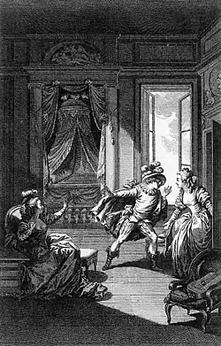 1785 print showing the Count discovering Chérubin in Suzanne's bedroom