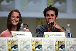 Kaya Scodelario and Dylan O'Brien at a panel for the film at San Diego Comic-Con in July 2014