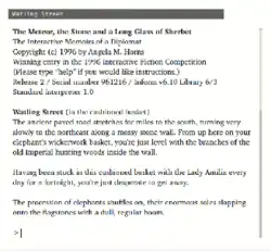 - ^ "2nd Annual Interactive Fiction Competition". Interactive Fiction Competition. 1996. Archived from the original on 2008-04-19. Retrieved 2008-04-08.