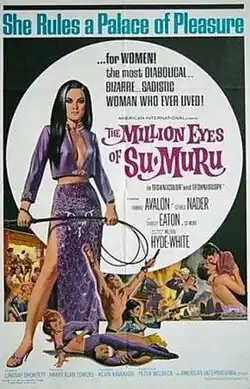 The Million Eyes of Sumuru, also known as The Million Eyes of Su-muru and Sumuru, is a 1967 British-Hong Kong spy film directed by Lindsay Shonte and starring Frankie Avalon, George Nader and Shirley Eaton.[1] It was produced by Harry Alan Towers and filmed at the Shaw Brothers studios in Hong Kong. It was based on a series of novels by Sax Rohmer about a megalomaniacal femme fatale.[2] (Towers had just made a series of films about Rohmer's Fu Manchu.[3])